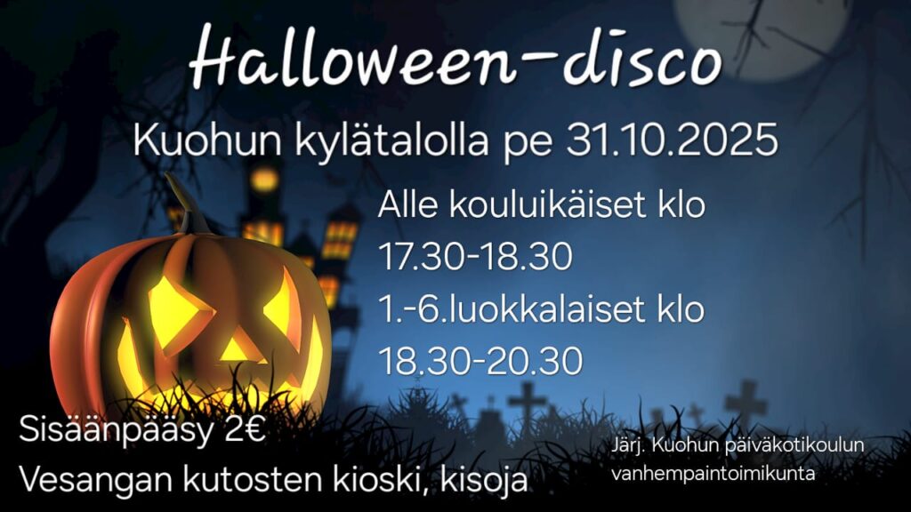 Halloween disco Kuohun Kylätalolla perjantaina 31.10.2025